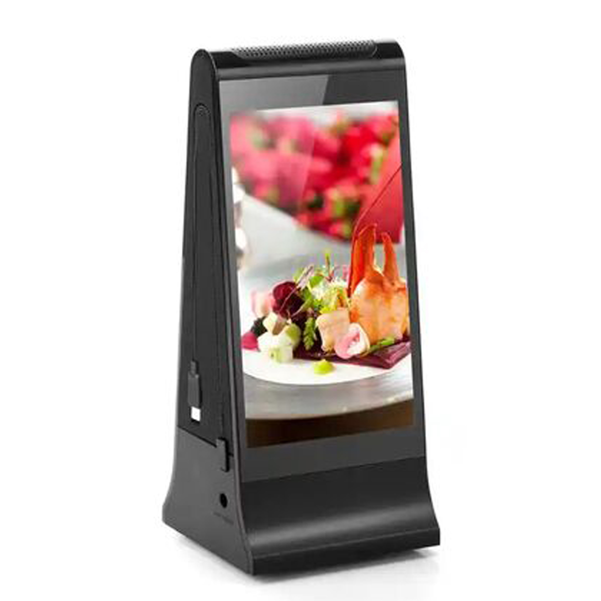 LED Table Top Battery Powered Display | Double Sided 7″ Screen | Charging Port | Video or Image Playback Loop.